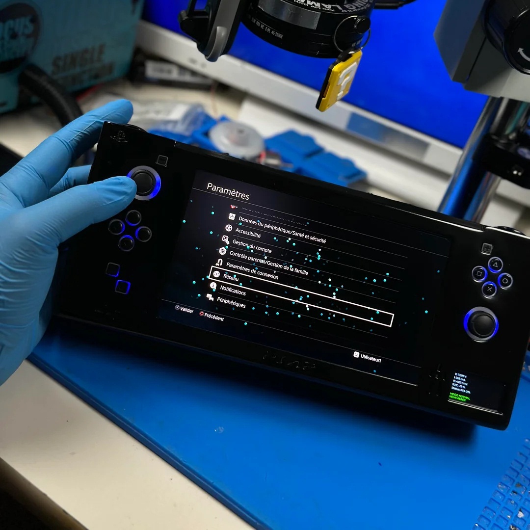 Как сообщает энтузиаст под ником wewillmakeitnow, в качестве основы он использовал материнскую плату Sony PlayStation 4 Slim, которая была разрезана и модифицирована с целью уменьшения её размеров и улучшения тепловых характеристик благодаря ряду оптимизаций, в том числе исключению некоторых компонентов. В качестве дисплея была выбрана 7-дюймовая OLED-панель с разрешением Ful HD, а корпус изготавливался по индивидуальному заказу, обладая компактными размерами и специальной конструкцией для более эффективного отвода излишков тепла.