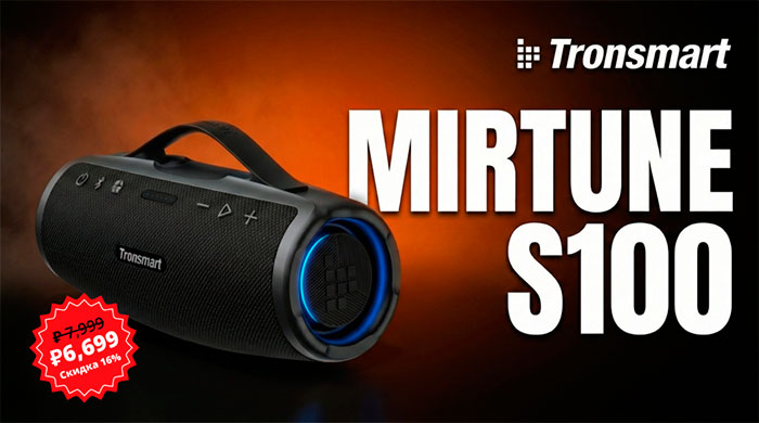 Колонка Mirtune S100 в рамках распродажи доступна по специальной цене 6 699 руб вместо обычной 7 999 руб (разница равна 1 300 руб).