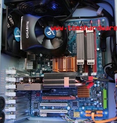 Этот демонстрационный стенд использовал двухъядерный процессор Core 2 Duo E8500 (3.16 ГГц), два гигабайта памяти типа DDR2-1066 и пассивно охлаждаемую видеокарту GeForce 9600 GT. Последняя, очевидно, должна скоро появиться в ассортименте продукции Gigabyte. Данная материнская плата способна поддерживать память типа DDR2-1200 в четырёх слотах DIMM.