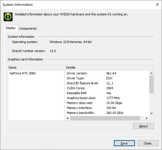 Кроме упоминаемого выше «железа», снабжённого свежей версией прошивки с поддержкой Resizable BAR и соответствующими настройками, потребуется также графический драйвер GeForce Game Ready с порядковым номером 461.72 или свежее. Чтобы проверить, функционирует ли технология, следует зайти во вкладку «Информация о системе» в Панели Управления NVIDIA — в случае положительного исхода напротив «Resizable BAR» будет красоваться надпись «Да» («Yes»).