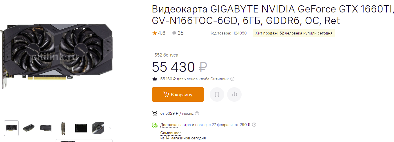 Одна единственная модель GeForce GTX 1660 Ti производства GIGABYTE была куплена в количестве 52 единиц. Это настоящий рекорд, ведь стоимость взлетела больше чем на 10 тысяч. Судя по всему, геймеры осознали, что скидок больше не будет, а видеокарты начнут дорожать. Мы бы не стали говорить, что это идеальный выбор, но 52 геймера с нами не согласны.