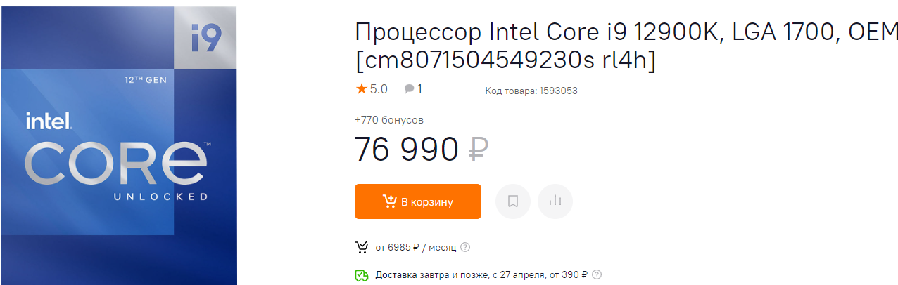 Вы удивитесь, но мы снова начнём с Core i9-12900K. В начале апреля за флагман производства Intel просили 150 тысяч рублей, ну а сегодня элитный камень с огромным потенциалом можно взять за 77 тысяч рублей. Если вы хотите как следует поэкспериментировать с разгоном, то берите только жидкостную систему охлаждения. В случае, если вам достаточно существующего потенциала, возьмите просто качественный кулер.