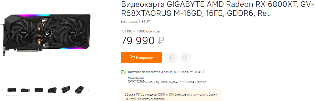 Те же 80 тысяч стоит GeForce RTX 3080. Видеокарта NVIDIA ничуть не хуже Radeon RX 6800 XT и проигрывает только по количеству видеопамяти. Если вам сложно сделать правильный выбор, то изучите тесты. С нашей точки зрения большим потенциалом обладает видеокарта AMD, но это частое мнение, ведь есть ещё и понятие бренда, более внушительная трассировка лучей и многое другое.