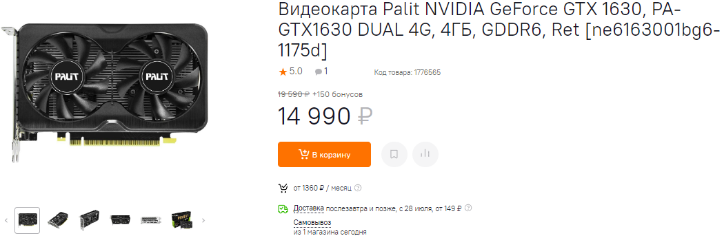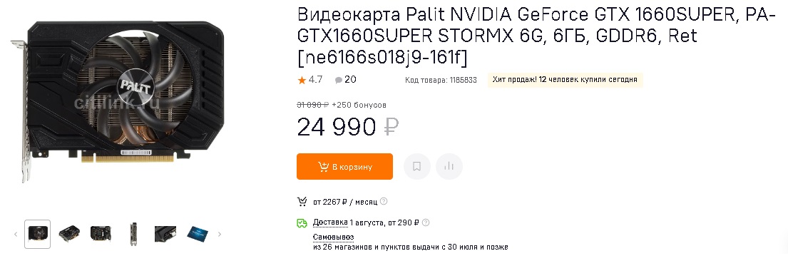 Из бюджетного сегмента для игр в FullHD можно рассмотреть хорошо знакомую: Palit NVIDIA GeForce GTX 1660SUPER