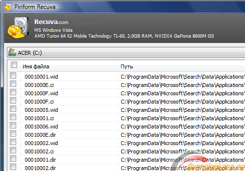 - Recuva 1.07.138 (0.5 MB, freeware).