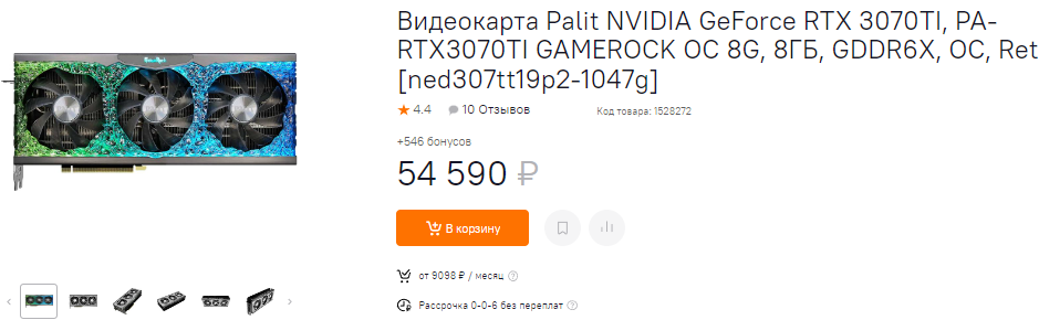 За 54 590 рублей в свободном доступе находится GeForce RTX 3070 Ti. Перед вами намного более мощный и перспективный графический чип, единственным недостатком которого является цена. На самом деле по сравнению с тем, сколько за GeForce RTX 3070 Ti просили в январе 2022 года, мы видим трёхкратное падение, но геймерам всегда мало. GeForce RTX 3070 Ti имеет все необходимое для того, чтобы стать лучшей видеокартой даже для самых требовательных геймеров. Ну а представленная модель порадует любителей подсветки, ведь это лучшее, что может предложить Palit.