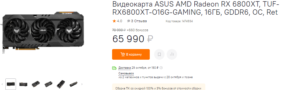 Radeon RX 6800 XT стоит 66 тысяч, но ведь это благословенный ASUS, о котором мечтают любители разгона. Видеокарта получилась добротной, а сам графический чип намного превосходит всех потенциальных конкурентов. Например, многие сравнивают Radeon RX 6800 XT с GeForce RTX 3080. В целом, последняя действительно предлагает отличный игровой опыт и неплохо подешевела. Флагман NVIDIA предыдущего поколения будет много лет тянуть все игры даже в 4К, но он предлагает меньше видеопамяти (12 Гб против 16 Гб) и ощутимо медленнее. Выбирать вам, но мы рекомендуем подумать головой. В интернете есть много сплетен, ну а все те, кто критикует продукцию AMD могли и вовсе никогда не пользоваться видеокартами от тётушки Су.