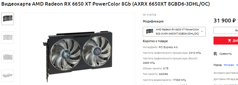 Если подумать, то наиболее оптимальным решением является Radeon RX 6650 XT. Эта видеокарта обладает огромным запасом мощности и не имеет проблем с доступом к играм. Вы можете запускать самые требовательные новинки не только в народном 1080р, но и побаловать себя более продвинутым 2К. В арсенале видеокарты находится технология FSR. Это значит, что даже через несколько лет вы не останетесь в минусе, поскольку всегда сможете поиграть на максимальных графических настройках в любые игры. В последнее время цена плавно приближается к 30 тысячам рублей, что очень хорошо, поскольку перед нами крайне перспективная видеокарта-долгожитель.