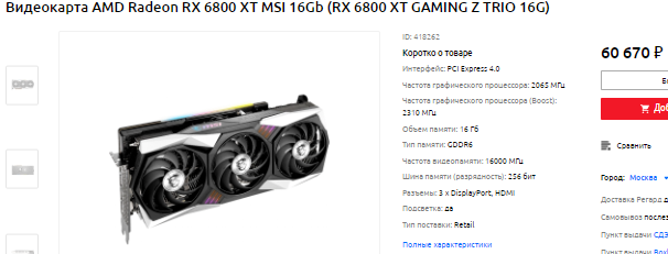 Впервые за Radeon RX 6800 XT просят всего 59 тысяч рублей. Перед вами видеокарта, которая обладает огромной мощью и станет отличным подарком даже для требовательного геймера. С ней у вас не возникнет проблем с запуском игр в разрешении 4К, хотя фанаты NVIDIA обязательно расскажут вам о трассировке лучей. Что любопытно, многие из них сидят на старых видеокартах и даже не представляют, что собой представляют волшебные лучи, но продолжают пересказывать сказки, подслушанные в интернете. GeForce RTX 3080 Ti немногим быстрее, но стоит почти 100 000 рублей. Ну и кто в здравом уме заплатит за видеокарту на 40 тысяч рублей дороже только из-за бренда? Учтите, что Radeon RX 6800 XT выгодно отличается по энергоэффективности и быстродействию, а значит вывод очевиден.