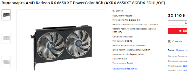 Radeon RX 6650 XT является одной из самых сбалансированных видеокарт на рынке, предлагая отличную производительность и высокий потенциал. Владелец такой видеокарты покупает её под монитор с разрешением 1080р ли 2К, хотя в последнем случае рассчитывать на максимальное качество графики уже не приходится. И в этот самый момент в продаже можно встретить GeForce RTX 3060 за 31 тысячу рублей. Возможно, если вы совсем не разбираетесь в видеокартах, то 12 Гб у NVIDIA покажутся вам более привлекательными, вот только нужно смотреть тесты в реальных играх. Ну а там Radeon RX 6650 XT выходит вперёд с большим отрывом. Кстати, перед нами ещё и вторая версия графического чипа, получившая в своё распоряжение более скоростную видеопамять на 17.5 Гбит/с. Благодаря этому отрыв от зелёных ещё выше.
