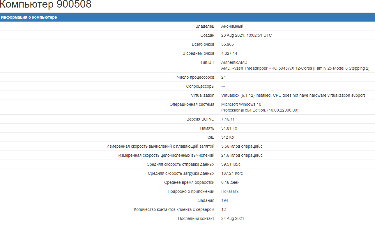 В сети появилась информация о двух процессорах линейки Threadripper PRO на архитектуре Zen3. Новинки появились на платформе MilkyWay@Home. Согласно страницам, обнаруженным @Benchleaks, к сети было подключено два компьютера с процессором Ryzen Threadripper 5995WX и PRO 5945WX.