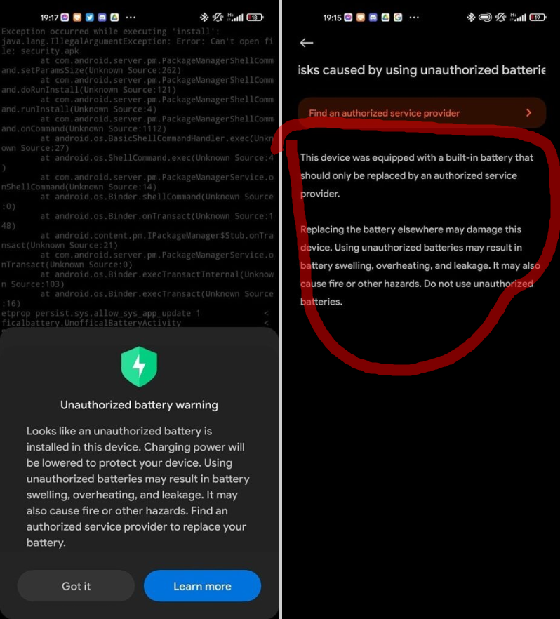 Похоже на то, что подобные истории ничему никого не учат. Как сообщается, недавно Xiaomi обновила версию штатного ПО Mi Security до версии 5.6.0, что вызвало неоднозначную реакцию у пользователей. Обычно подобные приложения заботились о безопасности системы, но на этот раз утилита начала вмешиваться в работу смартфона. Так, если вы заменили свой аккумулятор не в авторизированном сервисном центре, то уже вскоре на дисплее появится сообщение следующего характера.