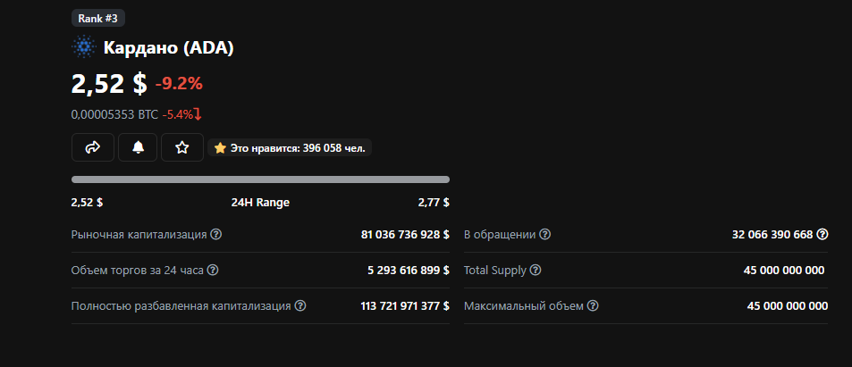 Так, в тройку лидеров сегодня вырвалась довольно маленькая и неприметная монета Cardano (ADA). Её капитализация составляет $81 млрд. У Binance Coin значительно меньше – всего $74 млрд. Cardano, концепт которой разработал соучредитель Ethereum Чарльз Хоскинсон, была создана в 2017 году и названа так (ADA) в честь первой в мире женщины-программиста – Ады Лавлейс. Она в 1843 году опубликовала первую во всем мире работу по информатике, описав алгоритм вычислительной машины, попутно вводя такие новые термины для того времени, как "цикл" и "рабочая ячейка".
