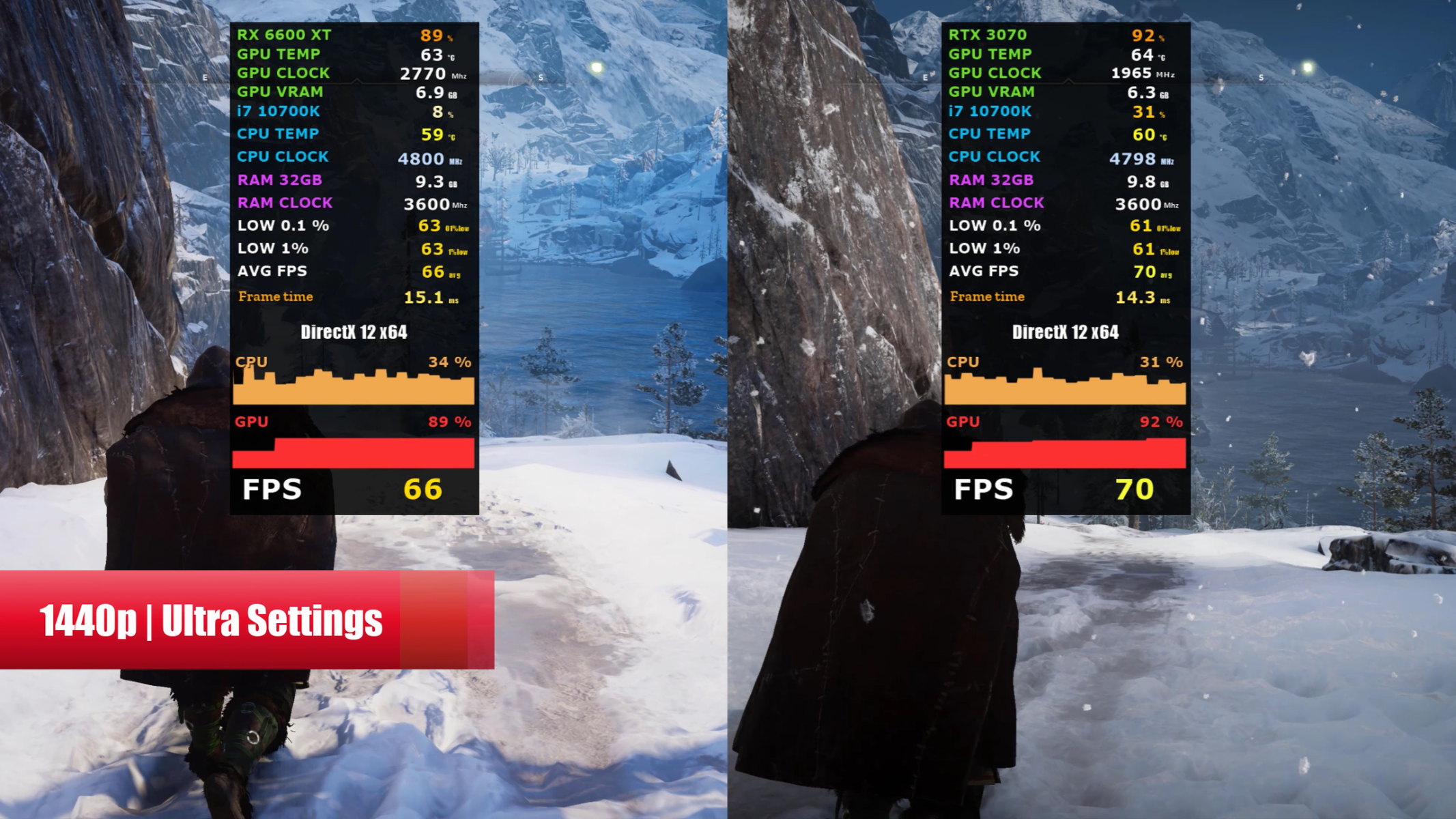 Одна из самых ожидаемых игр 2020 года. Настоящий AAA проект и что мы видим? Разница в производительности на уровне погрешности? Конечно, Юбисофт эту игру лучше оптимизировала под красную фракцию, но только вдумайтесь! Разница в цене на видеокарты составляет не менее 130$ и это не считая реалии майнинга. Неплохо, правда ли? Двигаемся дальше.