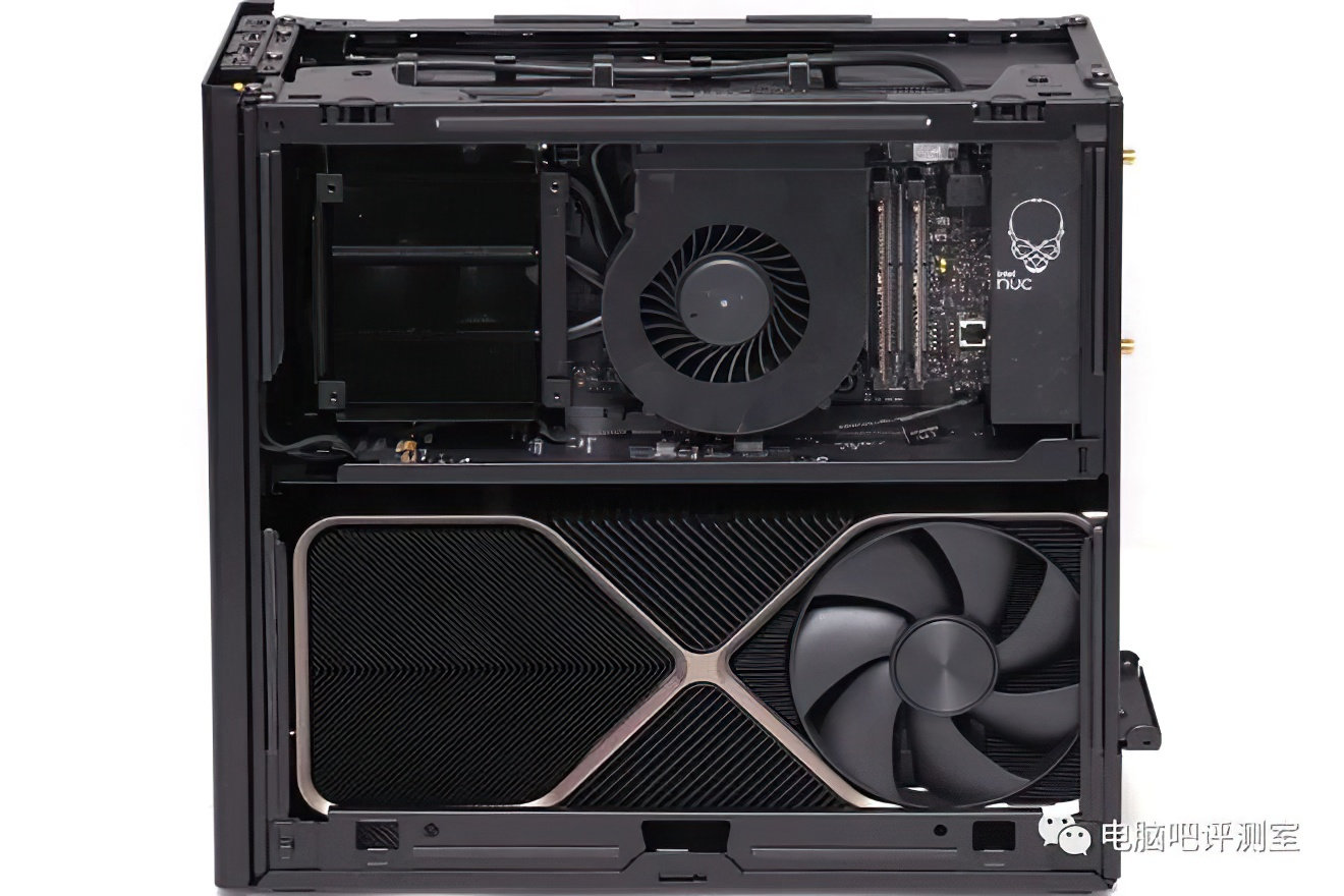 В Китае протестировали новый портативный компьютер Intel на флагманском процессоре Raptor Lake. Изначально он работает на 24-ядерном Core i9-13900K и с картой Asus GeForce RTX 3080 Ti TUF Gaming. Как видим, Intel не стала устанавливать собственные видеокарты. В данном случае целью производителя была демонстрация того, что этот компьютер может вместить самую мощную видеокарту, занимающую в системном блоке три слота.