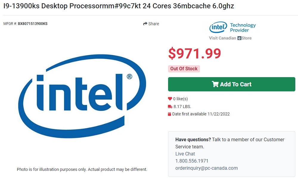 Как известно, в рамках своей официальной презентации настольных процессоров Core 13-го поколения, компания Intel поведала широкой компьютерной общественности и о своих намерениях по скорому выпуску первого в мире десктопного процессора, способного достичь частоты в 6 ГГц «из коробки», а сегодня предстоящая новинка, получившая название Core i9-13900KS, наряду со своими доступными «соплеменниками» с заблокированным множителем появилась в прайс-листе канадского онлайн-магазина PC-Canada, о чём сообщает ресурс Wccftech со ссылкой на «сетевого детектива», известного под ником momomo_us.