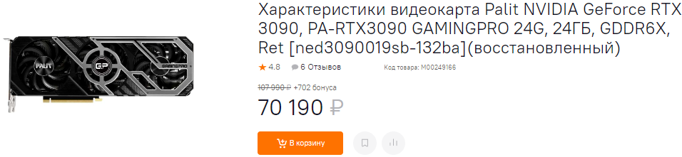 В данном случае ремонтом занимались специалисты, а очень часто всё сводится к восстановлению системы охлаждения или небольшому проходу паяльником. Повторимся, что не уговариваем вас, ведь вы получаете видеокарту с устранённым дефектом. Неясно, сколько она протянет, хотя многие модели идут с гарантией, в чём мы сегодня убедимся самолично. Простой пример, на Авито можно встретить GeForce RTX 3090 от 67 тысяч рублей и выше, при этом многие продавцы ещё и требуют предоплату. Кто знает, что у них там припрятано в рукаве. А вот в магазине вас ждёт вполне себе рабочая GeForce RTX 3090. Срок гарантии не такой большой, как нам бы хотелось, но он есть, а вы покупаете полностью проверенный товар. Нам кажется, что выгода очевидна.