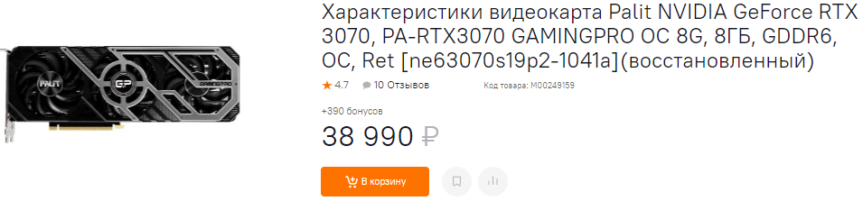 А как вам GeForce RTX 3070 за 39 тысяч рублей? Предложение даже не близко идеальному, поэтому вам нужно помнить, что прежде всего думайте головой, а после совершайте покупки. В данном случае в магазине можно встретить GeForce RTX 3070 за 46 тысяч рубликов с гарантией до трёх лет. Ну а здесь и цена не особенно выгодная, и гарантия печалит. Увы, но не все предложения одинаково хороши.
