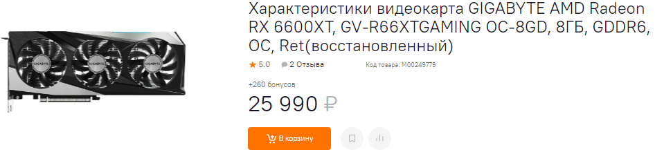 А вот Radeon RX 6600 XT за 26 тысяч рублей выглядит спорно. Дело в том, что в данном случае очень многое решает ваше отношение к деньгам. Если вы готовы переплатить 6 тысяч в магазине, то данное предложение покажется вам плохим. Вот только многие геймеры считают каждую сотню рублей, поэтому возможность сэкономить на ровном месте воспримут с радостью. Кстати, на карте осталась гарантия 2.5 года, что позволяет вам не думать о неприятностях, ведь за обслуживание отвечает магазин.