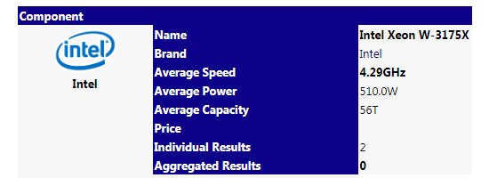 В бенчмарке SiSoftware энергопотребление процессора составило впечатляющих 510 Вт. В паре с ним работала материнская плата ASUS ROG Dominus Extreme, которая, обладая 32-фазной системой питания, судя по всему, прекрасно удовлетворила аппетиты монстра. Стоит заметить, что максимальная частота процессора достигала 4,29 ГГц, поэтому не исключено, что он был разогнан по всем ядрам, в противном случае его прожорливость поражает.