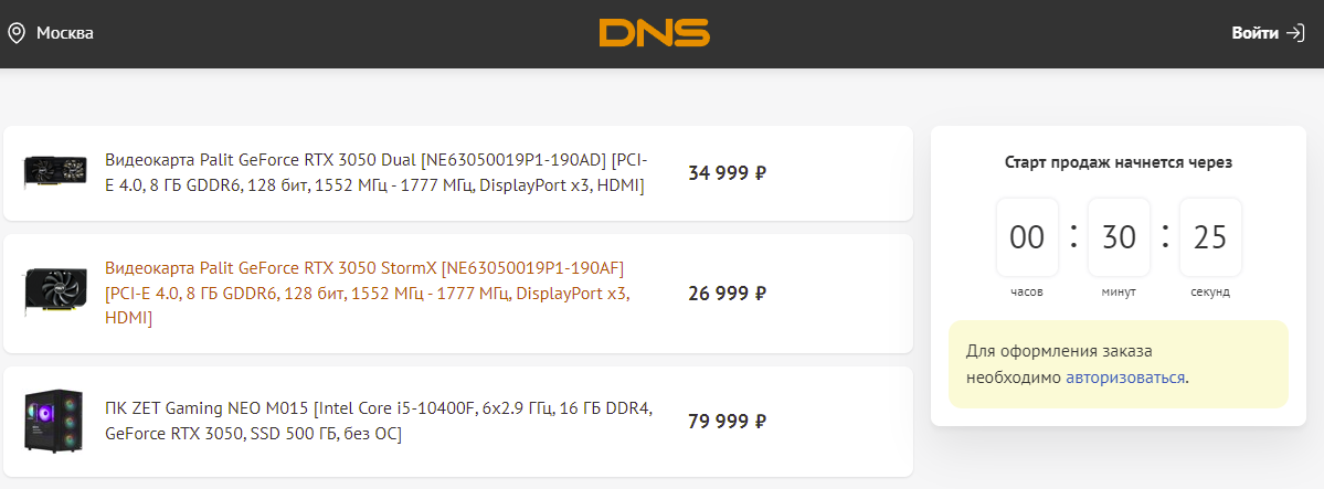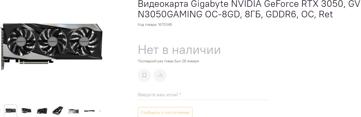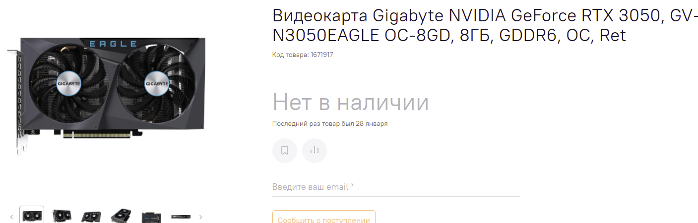 Магазин Ситилинк на данный момент предлагает три модели RTX 3050, хотя час назад новинки полностью отсутствовали в продаже.