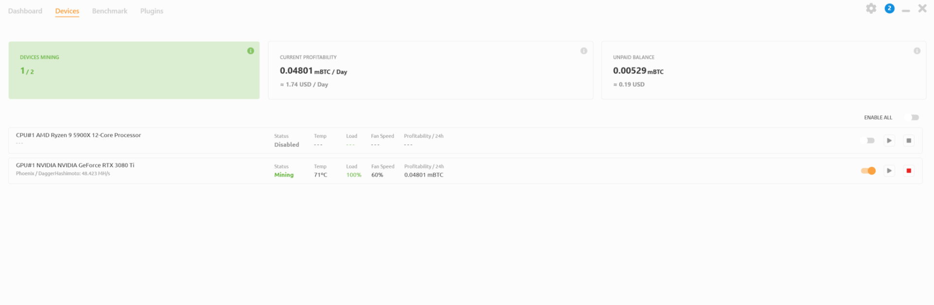 В hardwaretimes отмечают, что топовая GeForce RTX 3080 Ti в день приносит не более 2 долларов, в месяц – 50 долларов, а в год – $600. Зная, сколько стоит видеокарта в европейских розничных сетях (примерно $2 200), мы выходим на целых 40 месяцев ожидания и мотания электроэнергии, чтобы карта начала выходить в плюс. Кроме того, с переходом на PoS майнеры, начавшие добычу сегодня, будут терять деньги независимо от исхода событий.