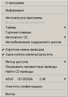 - Добавлена возможность принудительного обновления содержимого диска при закрытии лотка (для Windows 95/98/ME с отключенной опцией "Автоматическое распознавание диска").