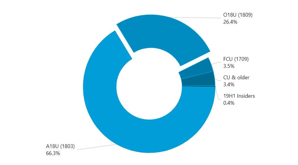 Темпы распространения Windows 10 1809 самые медленные среди всех подобных обновлений. Это неудивительно, поскольку это обновление было самым проблемным с технической точки зрения. Его выпустили 2 октября, а 6 октября уже убрали из-за многочисленных неполадок. Повторное распространение началось только 13 ноября и пользователи до сих пор относятся к нему недоверием.