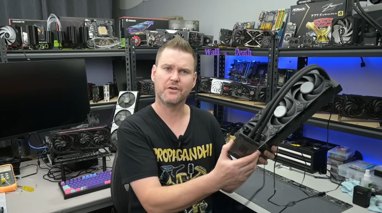 Австралийский оверклокер Trashbench решил радикально охладить свою GeForce RTX 3080. В стоковом состоянии память карты нагревалась до 104 градусов. Он прикрепил к ней серверный кулер Arctic WS360 с 360-мм радиатором.