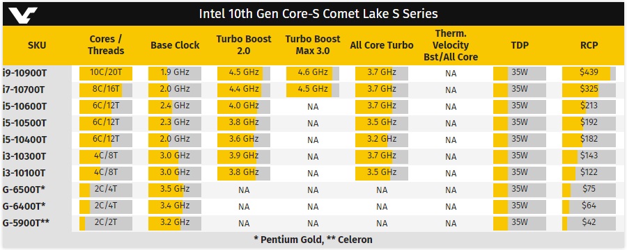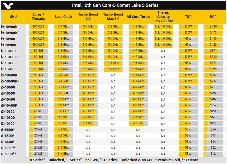 Согласно представленной информации, процессоры Intel под кодовым именем Comet Lake-S по-прежнему будут производиться по 14-нм технологическому процессу и смогут похвастаться наличием вплоть до 10 ядер у флагманских моделей, а также поддержкой технологии гиперпоточности (Hyper-Threading) и двухканального режима памяти вплоть до DDR4-2933 для семейств от Core i9 до Core i3. Что касается более доступных моделей Pentium и Celeron, то они будут поддерживать лишь DDR4-2666. При этом новая платформа сможет предложить до 40 линий PCIe версии 3.0.