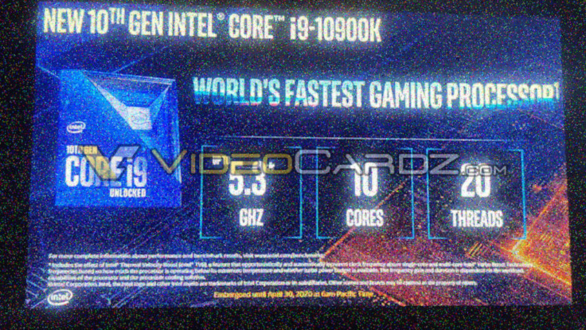 Пока широкая компьютерная общественность с нетерпением ждёт официального анонса настольных процессоров Intel 10-го поколения, в распоряжении ресурса VideoCardz оказались маркетинговые материалы «синей команды», которыми они и делятся с читателями.