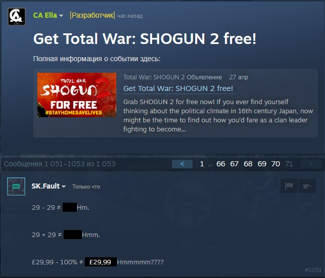 Разъяренные пользователи Steam буквально за полтора часа написали более тысячи негативных комментариев под новостью о долгожданной раздаче Total War: SHOGUN 2. Смысл большинства комментариев заключается в том, что Sega окончательно потеряла доверие среди игроков. Игроки чаще всего высказывают мысль о том, что Sega лживая компания, обманувшая свою аудиторию. Но и не обошлось без упоминания того, что Sega не так давно подняла цены на все игры серии Total War и они стали неоправданно дорого стоить.