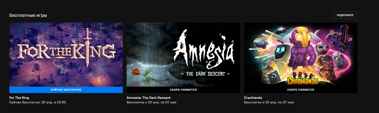 Напомним, что до 30 апреля в Epic Games Store можно забрать roguelike-стратегию For the King, после чего подарки сменятся на Amnesia the Dark Descent и Crashlands.