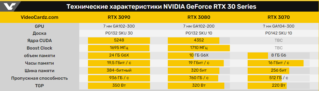 Характеристики видеокарт NVIDIA GeForce RTX 3090, RTX 3080 и RTX 3070 опубликованы