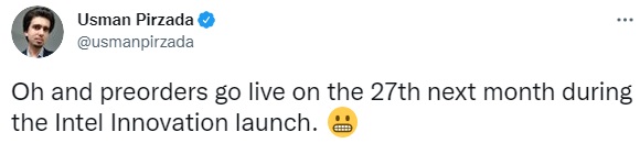 Кроме того, главный редактор ресурса Wccftech Усман Пирсада (Usman Pirzada) посредством своего Twitter-аккаунта сообщил, что для предварительных заказов новинки станут доступны на неделю ранее, то есть 27 октября.