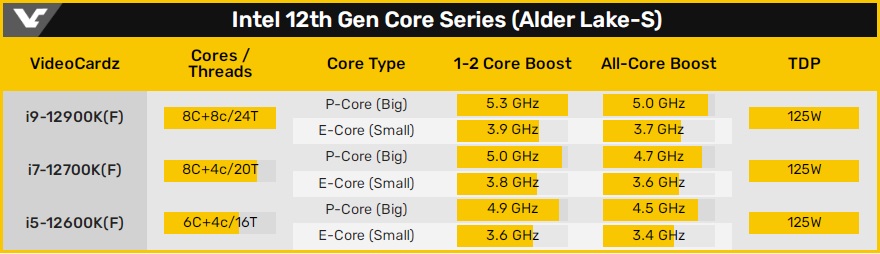 Ожидается, что первыми появятся в продаже модели с разблокированным множителем в лице как минимум Core i9-12900K, Core i7-12700K и Core i5-12600K, а также их «соплеменники», лишённые активной графической подсистемы.