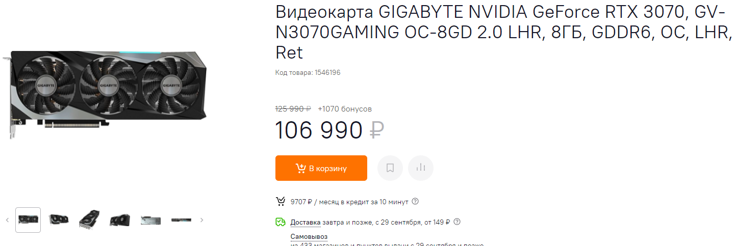 GeForce RTX 3070 не может похвастать такой гигантской скидкой, но в данном ценовом диапазоне почти 20 000 выглядит серьёзно. Конечная цена карты производства Gigabyte составила 106 990 рублей, а сама видеокарта позволит вам на несколько лет освободиться от навязчивых мыслей о необходимости апгрейда. Не у всех есть в кармане такая сумма, поэтому мы двинемся дальше, ведь впереди не менее интересные предложения.