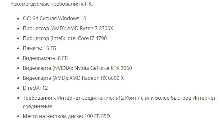 - видеокарта: NVIDIA GeForce RTX 3060 или AMD Radeon RX 6600 XT;