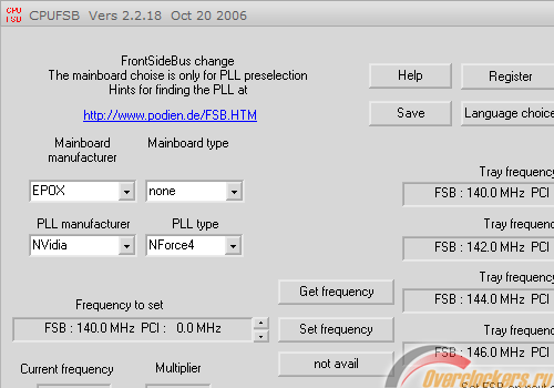 CPUFSB, в свою очередь, является программой ориентированной только на разгон процессора путем изменения частот системных шин. Порой работает куда хуже своего старшего брата. На примере платы с nForce 4 SLI, только CPUCool смог нормально разогнать на ней процессор, в отличии от CPUFSB, который вовсе не мог прочитать значения шины HTT, хотя и ориентирован только на эту функцию.