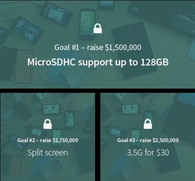 Разработчики Jolla Tablet подобную поддержку готовы превратить в дополнительные функциональные возможности устройства. Например, после рубежа в $1,5 млн. планшет получит поддержку карт памяти типа microSDHC объёмом до 128 ГБ, ещё четверть миллиона долларов принесёт поддержку раздельных окон в многозадачном режиме работы, а за $2,5 млн. создатели планшета уже готовы наделить его в одной из модификаций модемом с поддержкой беспроводных сетей поколения 3.5G, который рядовому потребителю будет обходиться в дополнительные $30.
