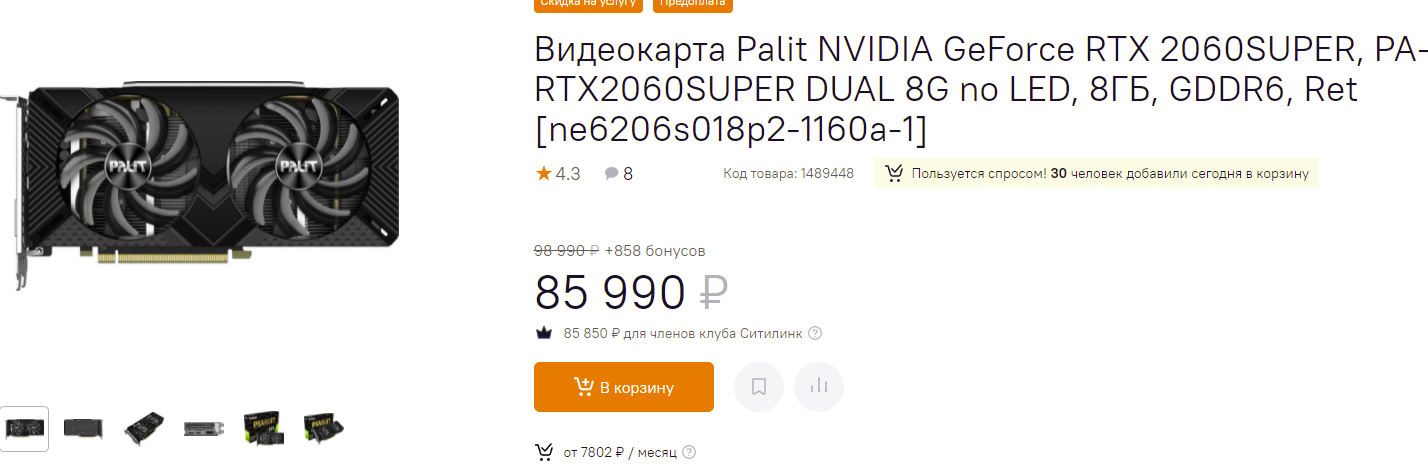 Совершенно неожиданно на втором месте оказалась GeForce RTX 2060 SUPER. Вне всякого сомнения геймеры не будут покупать такую видеокарту за 86 тысяч рублей, когда есть более производительная Radeon RX 6600 XT за 76 тысяч. Единственное объяснение состоит в огромной разнице в хешрейте. Так, последняя выдаёт 32.5 MH/s, а GeForce RTX 2060 SUPER в стоковом варианте легко покоряет 44.5 MH/s. Очевидно, что майнеров не волнует скорость в играх, ведь есть более важные показатели.