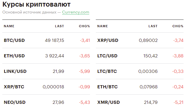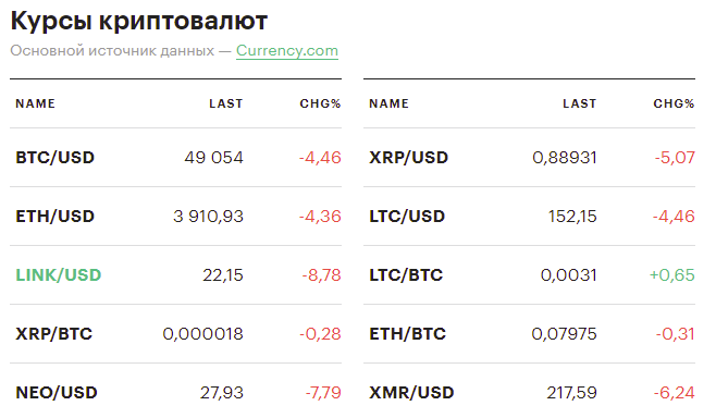 Похожим образом дела обстоят и у флагмана рынка криптовалют в лице Bitcoin. Котировки первой цифровой валюты упали ниже отметки в 48 000 долларов за токен. По данным экспертов РБК, это связано с общими пессимистичными настроениями на традиционных финансовых рынках. В данный момент инвесторы напуганы возможным ужесточением денежно-кредитной политики со стороны ФРС, что заставляет их активнее избавляться от рискованных активов.
