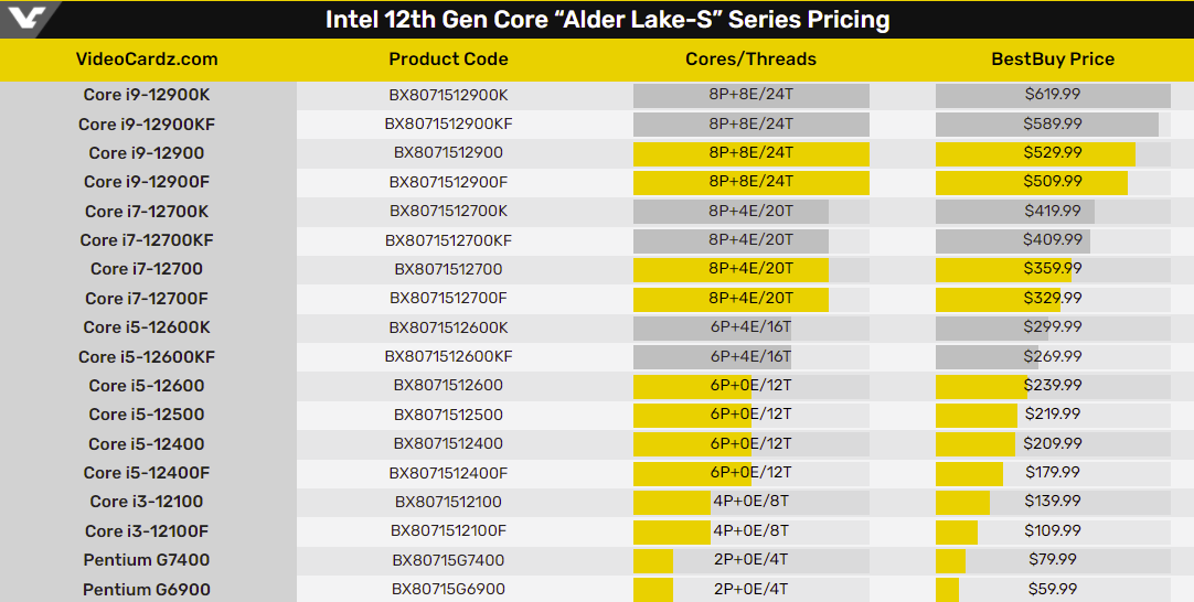 Если у вас есть какие-то вопросы относительно скорого анонса процессоров Alder Lake-S с заблокированным множителем, то обращайтесь в наш материал. Там можно изучить список, тактовые частоты и многие другие параметры. Напомним, официальный анонс ожидается уже 4 января, а в качестве даты продажи значится 5 января. Неясно, доедут ли новые камни до российского рынка, или первую партию направят в Европу и США. В тот же день в продаже появится линейка бюджетных материнских плат. В прессу уже попадали данные о некоторых моделях производства Gigabyte и ASRock, созданных на основе чипсета H610. Сообщается, что в Китае самые бюджетные материнские платы будут доступны за 86 долларов на старте. Что любопытно, они предлагают поддержку M.2 и PCIex16, а значит могут вызвать повышенный интерес как среди обычных пользователей, так и среди тех, кто предпочитает бюджетные сборки. Эксперты ожидают, что одним из наиболее популярных процессоров 2022 года станет Core i5-12400F. Он лишён малых ядер и способен покорить тактовую частоту 4.4 ГГц. При стоимости в 180 долларов он с лёгкостью обходит более дорогие Ryzen 5 5600X и Core i7-11700K в играх.