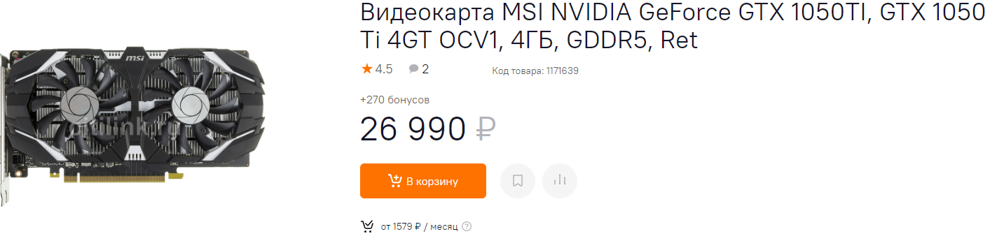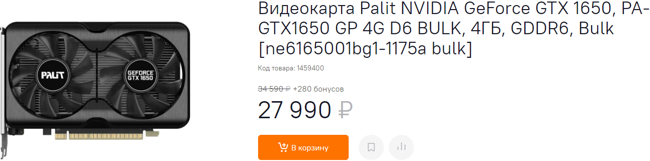 GeForce GTX 1650 снова скинула пару тысяч рублей, но всё ещё необоснованно дорогая. Нам эта видеокарта кажется прекрасной альтернативой для Radeon RX 6500 XT. Да GeForce GTX 1650 медленнее абсолютно во всех играх, но её ключевое преимущество зелёный шилидик, свидетельствующий о принадлежности к NVIDIA. Мы не разделяем подобных условностей, предпочитая наиболее удачные по цене и производительности видеокарты, но не признавать силу бренда не станем. А вот цена GeForce GTX 1050 Ti кажется нам откровенно неадекватной. Карта уступает GeForce GTX 1650 не меньше 20%, при этом стоит всего на 1000 рублей дешевле. Если оправдать покупку GeForce GTX 1650 мы ещё можем, то брать GeForce GTX 1050 Ti не советуем.