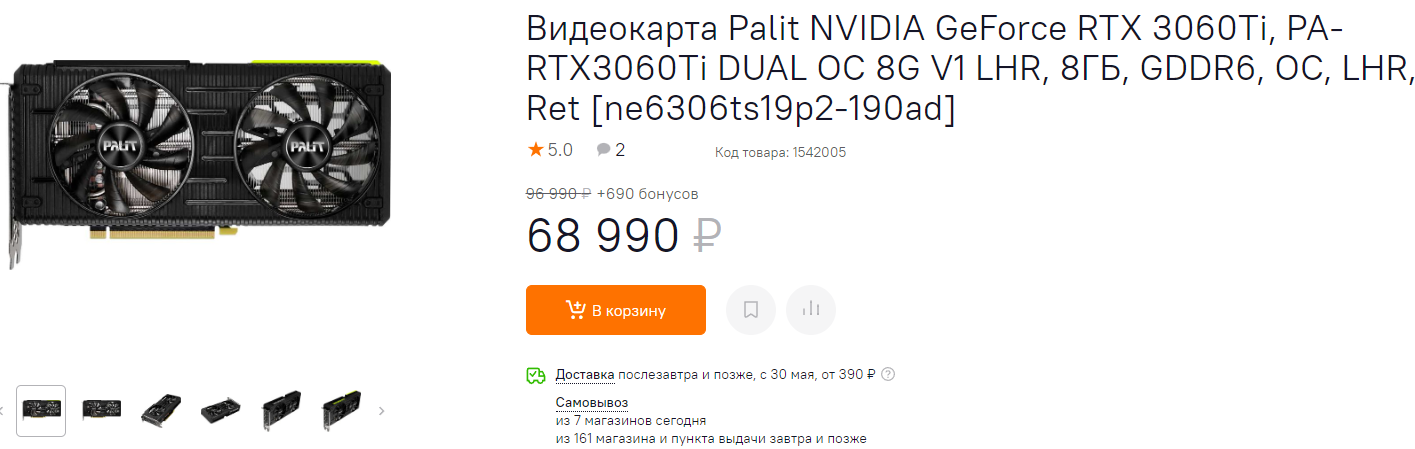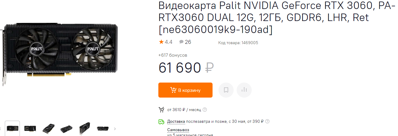 Раз уж пошла тотальная экономия, то следующим лотом будет GeForce RTX 3060. Если вы накопили 61 690 рубликов, то самое время их потратить с умом. Эта видеокарта является оптимальным выбором для игр в разрешении 1080р, где демонстрирует внушительный уровень производительности. Любителей технологий впечатлит трассировка лучей, а всё вместе позволит на много лет удалить адрес компьютерного магазина из закладок.