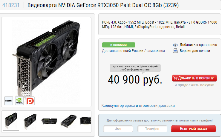 Ну и для тех, кто хочет сэкономить ещё 5 тысяч – есть GeForce RTX 3050. Эта видеокарта имеет примерно аналогичный уровень производительности с GeForce RTX 2060, но нравится далеко не всем геймерам. Главная претензия – это узкая 128-битная шина. Хотя вместо этого вы получаете новую архитектуру и 8 Гб видеопамяти. Выбирайте то, что нравится лично вам. В тестах обе карты показывают почти одинаковую производительность.