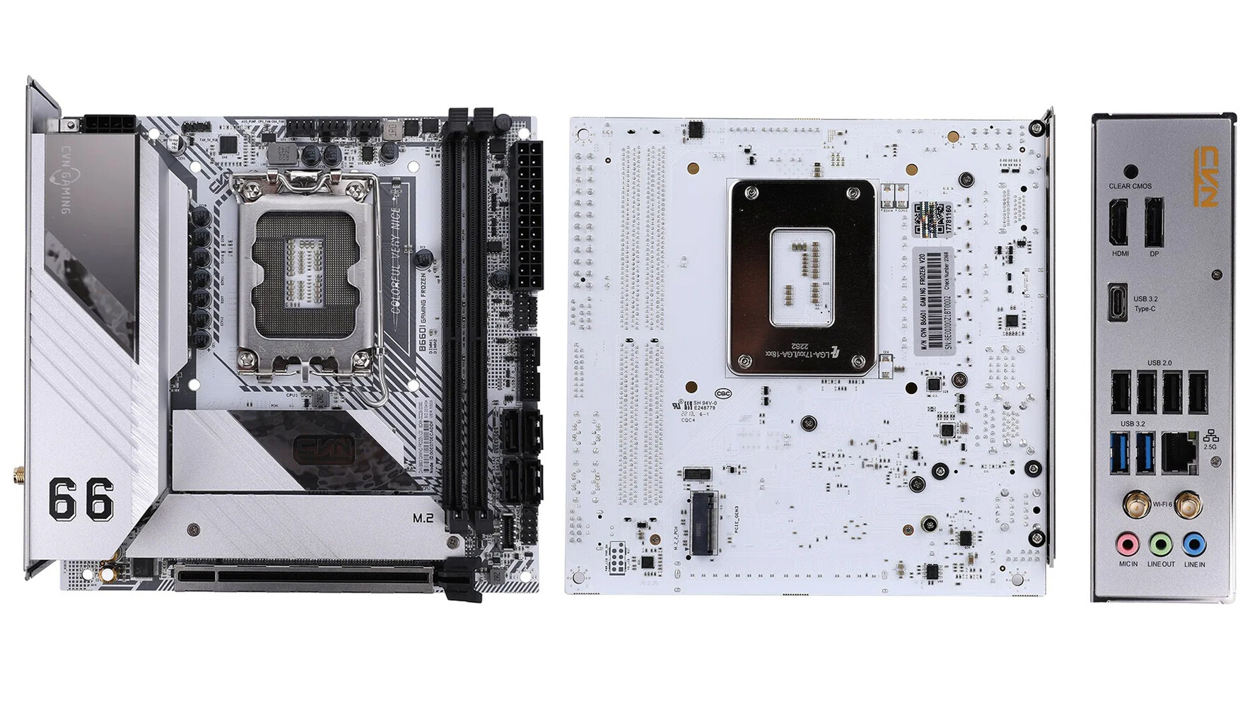 Что касается отличий, у варианта FROZEN белая печатная плата и сетевой адаптер Realtek 2.5G, в то время как базовый вариант оснащён Intel I219V. Поддержка Wi-Fi 6 и Bluetooth 5.1 реализована с помощью адаптера Intel WiFi 6 AX201. На задней панели присутствуют: порт USB 3.1 Gen1 Type-C, четыре порта USB 2.0 и два порта USB 3.2. Поддерживается подключение USB 3.2 Gen1 Type-C для USB-C фронтальной панели корпуса.