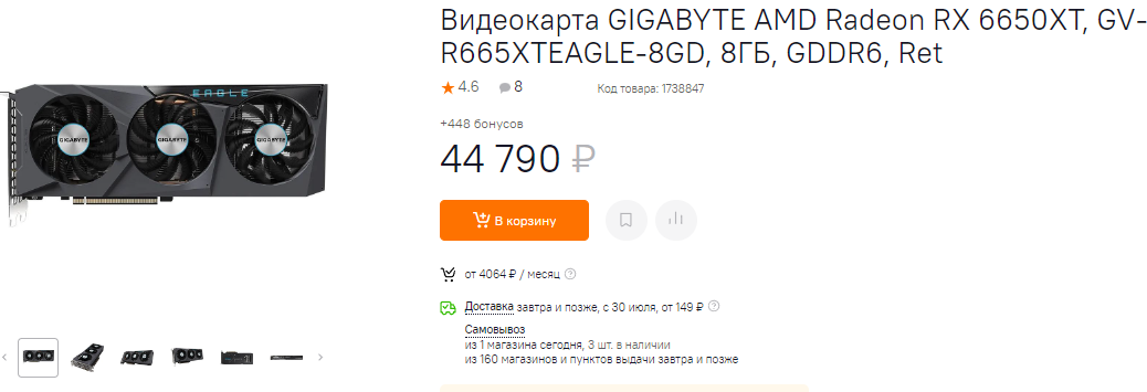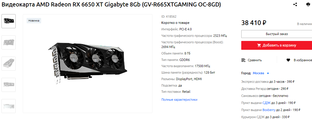В качестве альтернативы можем предложить Radeon RX 6650 XT. При идентичной скорости с GeForce RTX 3060 Ti, видеокарта производства AMD выигрывает за счёт цены. Согласитесь, что гораздо приятнее заплатить на 9 тысяч меньше, а получить ровно столько же. Ну и не забывайте, что Radeon RX 6650 XT ещё и более энергоэффективная. Многие эксперты шутят, что она заработает даже на старом утюге. На самом деле это не совсем так, но покупать блок питания отдельно для видеокарты точно не придётся.