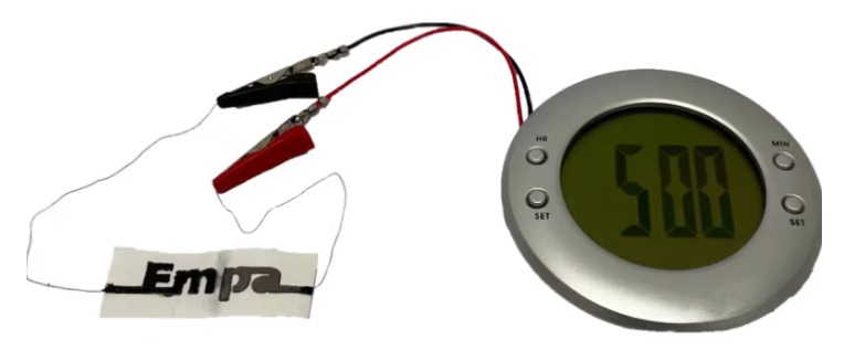 Ученые использовали двухэлементную бумажную батарейку для питания ЖК-будильника. Empa