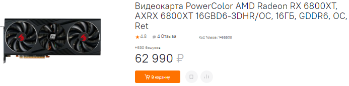 Начнём с Radeon RX 6800 XT, за которую сегодня просят 63 тысячи рублей. Давайте сразу договоримся, что никто в здравом уме не будет считать российские цены низкими, но раз других предложений нет, то приходится исходить из конкретных реалий. Итак, Radeon RX 6800 XT обладает достаточным быстродействием для запуска любых игр в разрешении 4К. Фанаты зелёного лагеря начнут заявлять о трассировке лучей, которая у красных хуже реализована. Возможно, но если вам сильно хочется поиграть в лучи, то берите GeForce RTX 3080 Ti за 100 тысяч рублей, ну а мы предпочитаем Radeon RX 6800 XT. Кстати, многие геймеры заявляют, что на эффекты от трассировки интересно смотреть, но уже спустя пару минут после начала игры ты забываешь о таких мелочах, полностью погружаясь в сюжет.